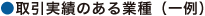 建設業、製造業、ソフトウェア開発業、ネットサービス業、情報通信業、農業、漁業、飲食、介護、医療、運輸業、倉庫業、卸売業、酒屋、スーパー、自転車小売業、家具屋、薬店、化粧品店、鉱業、電気、ガス、スポーツ用品小売業、水道業、放送業、広告制作、鉄道業、リサイクルショップ、ネットショップ、生命保険代理店、 損害保険代理店、証券販売業、FX等投資業、不動産仲介業、不動産賃貸・管理業、駐車場業、喫茶店、飲食店、ホテル、開業医、歯科医、学習塾、カルチャースクール、外国語スクール、フィットネスクラブ、弁護士等士業、コンサルタント、デザイナー、カメラマン、イラストレーター、ライター、司会業、クリーニング業、美容室、理容室、モデル、タレント、旅行代理店、マージャンクラブ、ゲームセンター、カラオケボックス、ネットカフェ、物品レンタル業、人材派遣・紹介業等